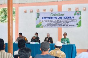 PeloporKalimantan, Balangan – Pemerintah Desa Muara Jaya, Kecamatan Awayan, Kabupaten Balangan, Kalimantan Selatan, menggelar sosialisasi mengenai keadilan restoratif (Restorative Justice) dan pencegahan narkoba. Kegiatan ini